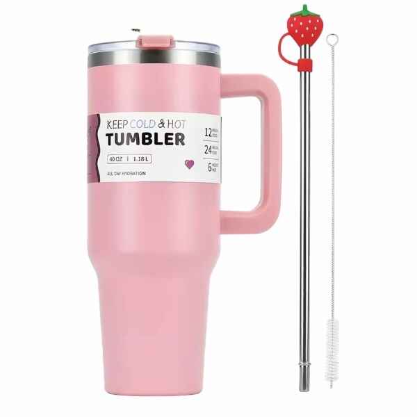 Upgrade your daily hydration routine with our 40 oz Tumbler With Straw And Handle—the perfect companion for home, office, travel, or outdoor adventures. Designed for convenience and performance, this premium 40 oz insulated tumbler with handle keeps your beverages at the perfect temperature for hours while offering an easy-to-carry, spill-resistant design.