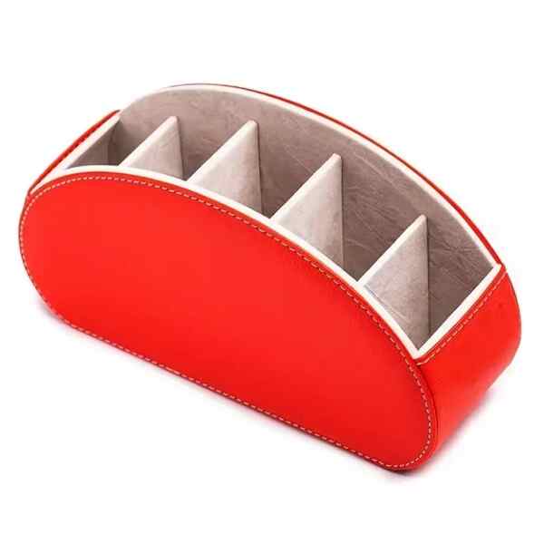 Measuring 14.5 x 11.7 x 9 cm / 21.5*7*11.5cm, this remote control holder for tv is designed to maximize storage while taking up minimal space. The open-top design ensures easy access to your remotes and other essentials, making it a practical addition to any home. The 2 & 4 compartments material is wood while the 5 compartments material is leather.