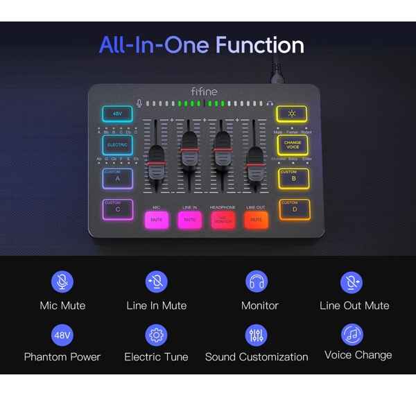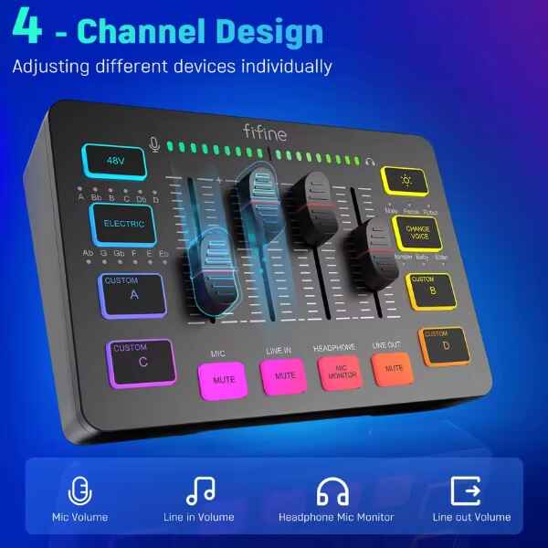 Don’t waste time fumbling through complicated menus. With an intuitive layout and essential functions like real-time monitoring, instant mute, and master volume control, you’ll always have quick access to what matters most. Whether you’re a beginner or a seasoned streamer, this affordable Fifine mixer helps you stay in control—without missing a beat.