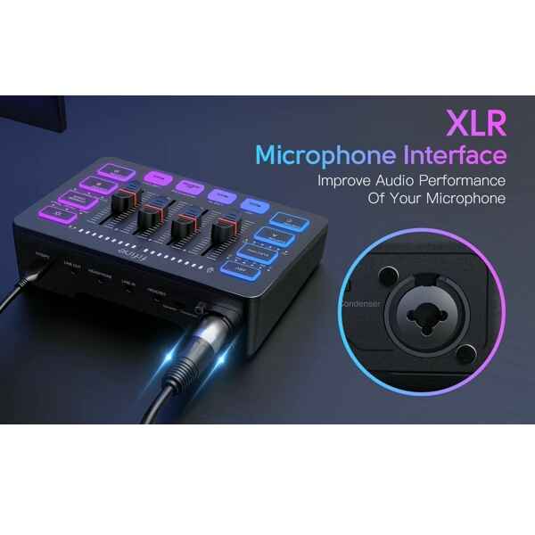 Upgrade your audio setup effortlessly. This gaming audio mixer supports XLR microphone inputs with built-in 48V phantom power, giving you the freedom to plug in high-quality condenser mics without any extra gear. Whether you’re narrating a Let’s Play, recording a podcast, or hosting a live Q&A, your voice will come through loud and clear—with professional-grade fidelity.