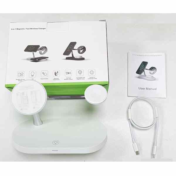 The dual magnetic core with a double ferrite ring of the magsafe 3 in 1 charging station ensures strong magnetic alignment, reducing leakage flux and optimizing the charging efficiency. This feature ensures that your iPhone, Apple Watch, and AirPods are always perfectly aligned for a consistent and reliable charge.